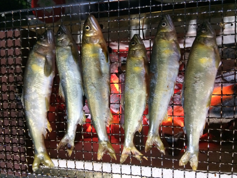 少しですが鮎が掛かる瞬間の違和感を感じられるようになったのでそれからはポツリポツリと同じポイントで15cmから18cmの鮎を掛けていきます。