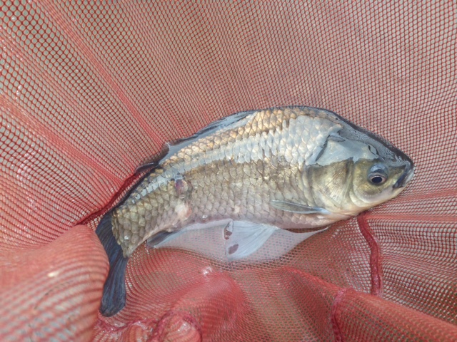 上がってくるヘラブナも、黒光り?した、いかにも銀山湖らしい魚体。