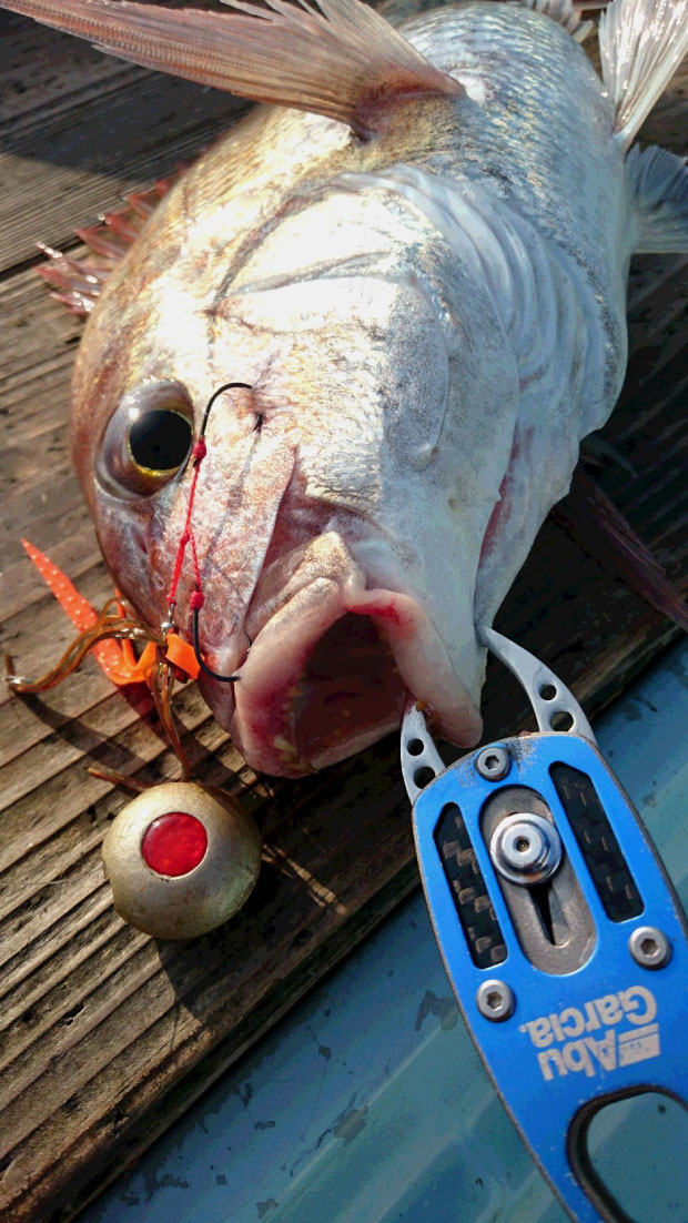 幸先良く良型のマダイをGET!