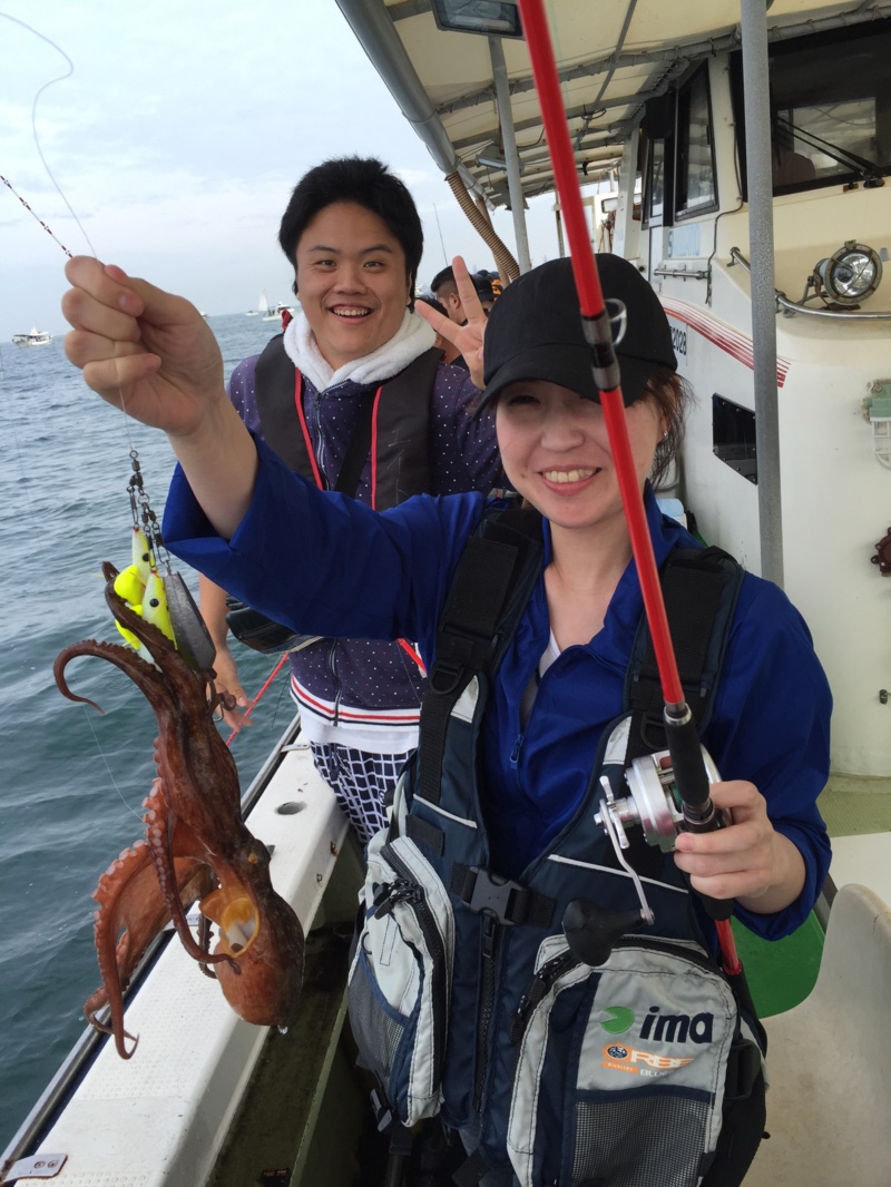 今回スタッフの小牟田さんが2.1kgの蛸も釣り船の中はよく盛り上がりました!