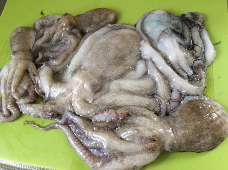 初めてなので仕掛けの付け方から教えてもらい、タコエギに豚の背脂をつけ、釣り開始!