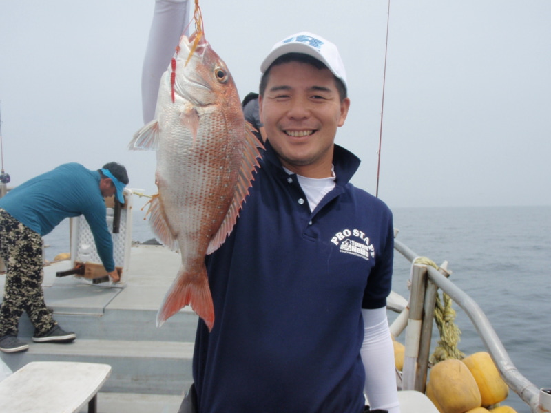 第1班より激流との情報でしたがこの日の海は穏やかで60gのタイラバで十分底がとれました。