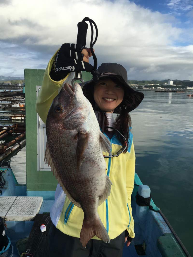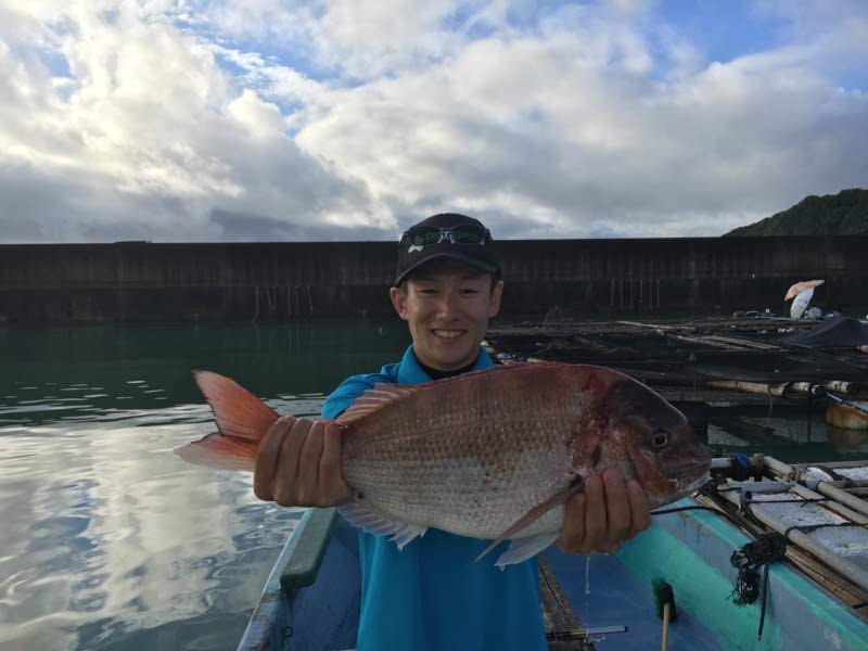 まず朝1番に2人とも鯛を釣り上げます。なかなかのサイズ!