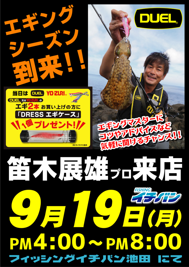 4店舗でデュエル 笛木展雄プロエギングイベントを開催致します!!
