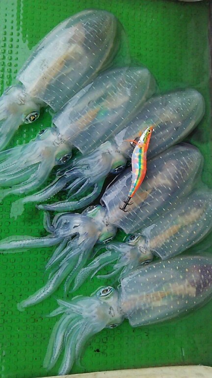 小まめにタナ取りをしたりエギのカラーをローテーションさせたり、やはり良く釣る常連さんは手返しも違うなぁと勉強になることも沢山ありました。 この日はグリーン系と紫系・オレンジカモなんかが好調だったように感じましたが、私はUVの青が良かったですょ。(^^)