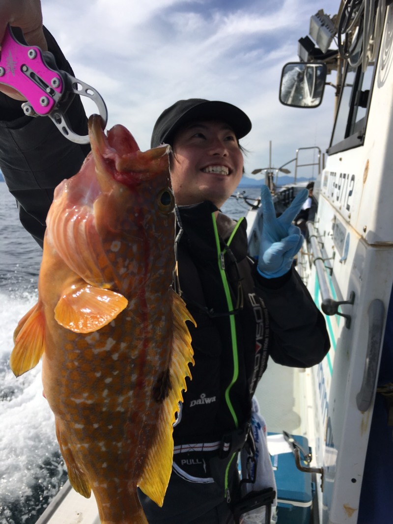 早速佐伯店長にアタリがありいきなりアコウを釣りました!