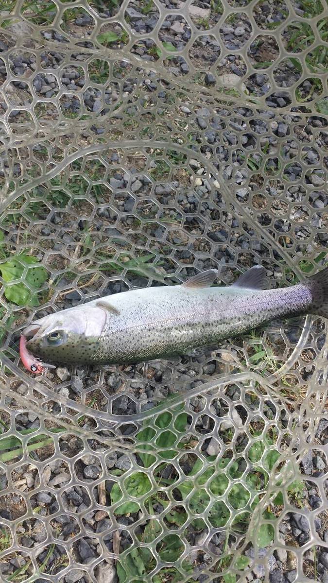 朽木渓流魚センターに行ってきました。朝一は活性の高い魚を狙うためにクランクでスタート!ポロポロと釣っているとトップに反応が集中していたので、ルアーを潜らせずゆっくり巻いていると下からバシャッとヒット!ルアーや色を変えながら続けると昼過ぎまでコンスタントに釣れてくれました。