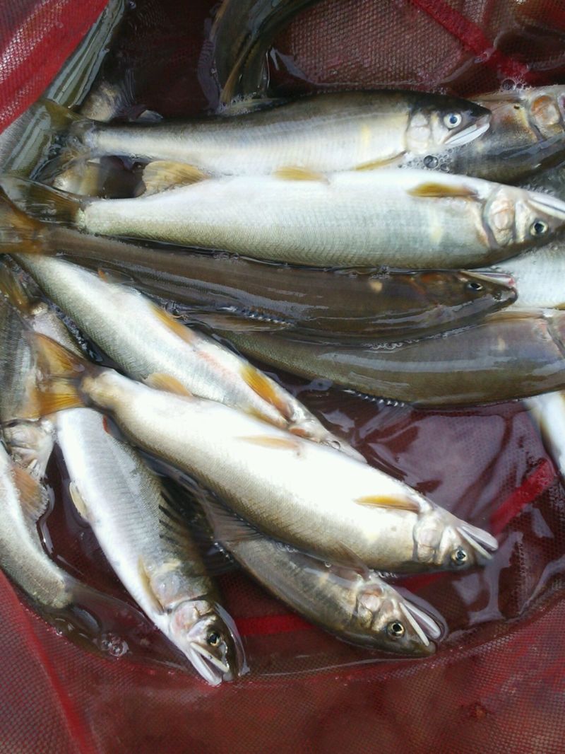 当日入ったポイントは何の変化もない浅瀬(40~60センチほど)。釣時間8時30~14時。2人で80匹の釣果。