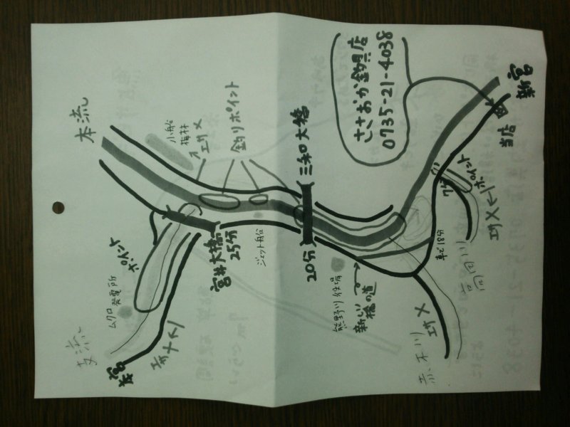 通年熊野川本流は笹濁りで現地釣具店の仕掛けはハリス0.6号・小あじ鈎の3号が主流です。