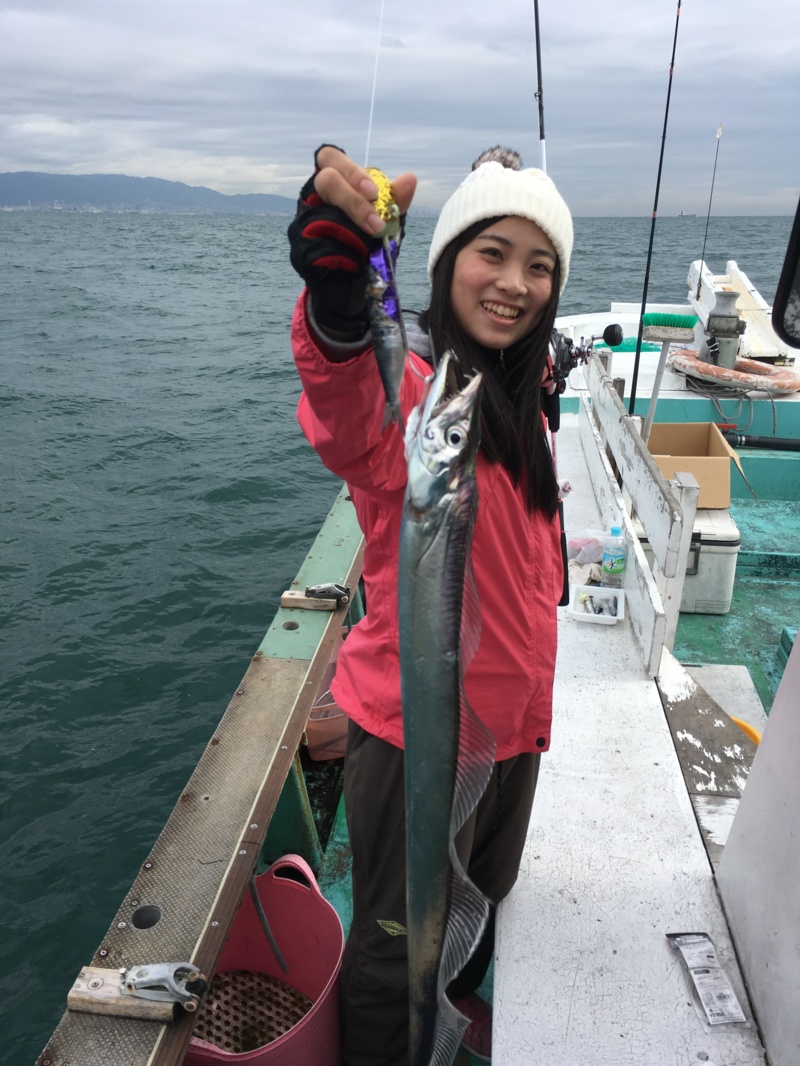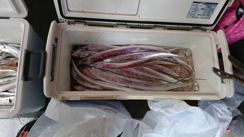 普段あまり船釣りに行く事の少ないスタッフを多数連れて泉佐野のマリンライフさんから出船しポイントへ!船タチウオが初めてのスタッフも先輩スタッフがついて釣りを開始すると朝一からあたりが!ぽつりぽつりですが順調に釣れだし、みんなが慣れ出してからは全員で竿を出しすぐに全員釣果達成!11時ごろには連続のアタリで初挑戦の女性スタッフでも最高20匹ほど釣ることができました!タチウオは只今最好調に突入ですよ!近いですし、未経験の方もチャレンジしてくださいね!