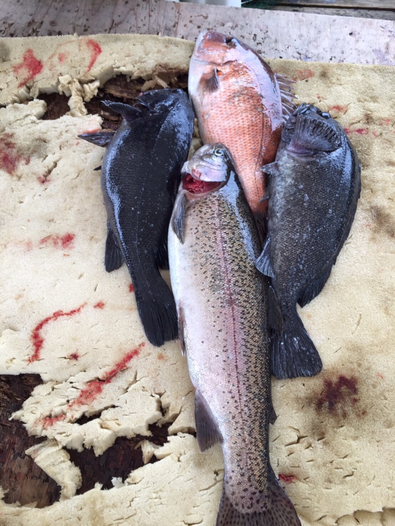 - 真鯛1匹、黒ソイ2匹、サーモン1匹