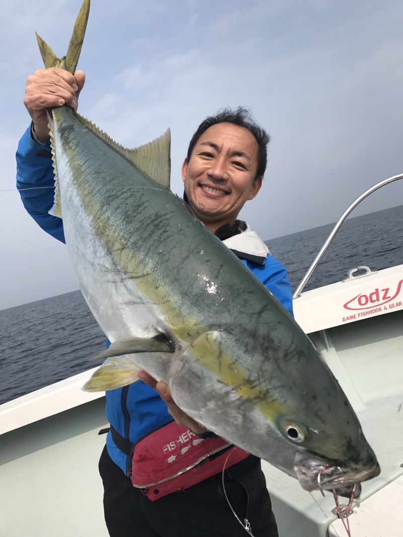 3月末、春の丹後沖にブリを狙いに行きました。本命の白石グリは決して甘い状況でなく、まずは中浜沖70mの瀬からスタート。事前情報ではベイトはコイカが多く、水平にスライドフォールするランス160~200gのロングフォールが効果的との事。まずは活性を上げる為にスピニングの早巻きでスタート、瀬の付近で潮噛み感を感じた3投目、グローカラーのガタージグ200gにドスンとヒット、2号タックルでそこそこ走られながら7㎏サイズのブリをキャッチ。程なく迫田も同サイズをキャッチ、こちらはランスのロングフォール。このまま楽勝かと思いきや、イルカが現れひたすら我慢のジギング・・・。夕方に白石に入り酒井船長も竿を出すと、ロングフォールで一人勝ち!ブリ・メジロ・マダイを次々とヒット! ベイトは勿論、スピニングでもロングフォールで連発、ラインの変化でアタリを取る感覚、ジグはランスの160~200g。ドテラ流しですが、ベイトタックルで3~5シャクリ後にロングフォールの3セット×2・3回でピックアップして打ち直し。フォール中のジグを追尾している事が多く着底後レスポンスの速さとラインの変化を感じた後のフッキングまでの早さの勝るベイトタックル。従来のスピニングとは異なるジギング、春にお試しを。
