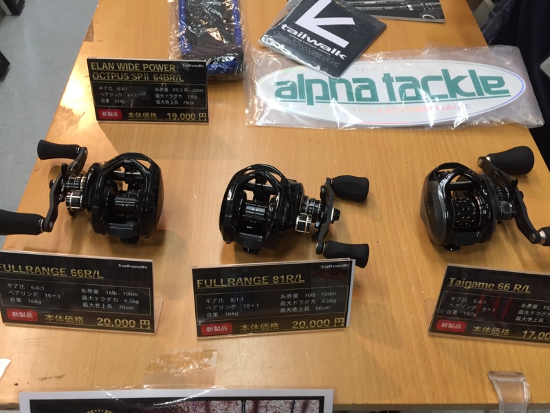 ルアーロッドブランドテイルウォークからは大好評『フルレンジ』シリーズの最新リールを展示販売。