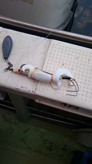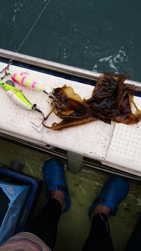 当日のポイントは東二見で水深は7~14mで底は砂地が多く底にワカメが生えているのでスッテを使うとワカメだらけになるので注意!!