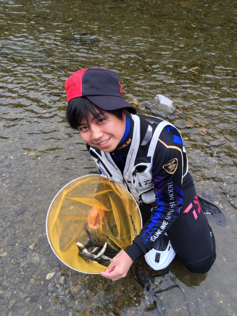 当日は足首位のチャラ瀬にしっかり鮎が付いていました!