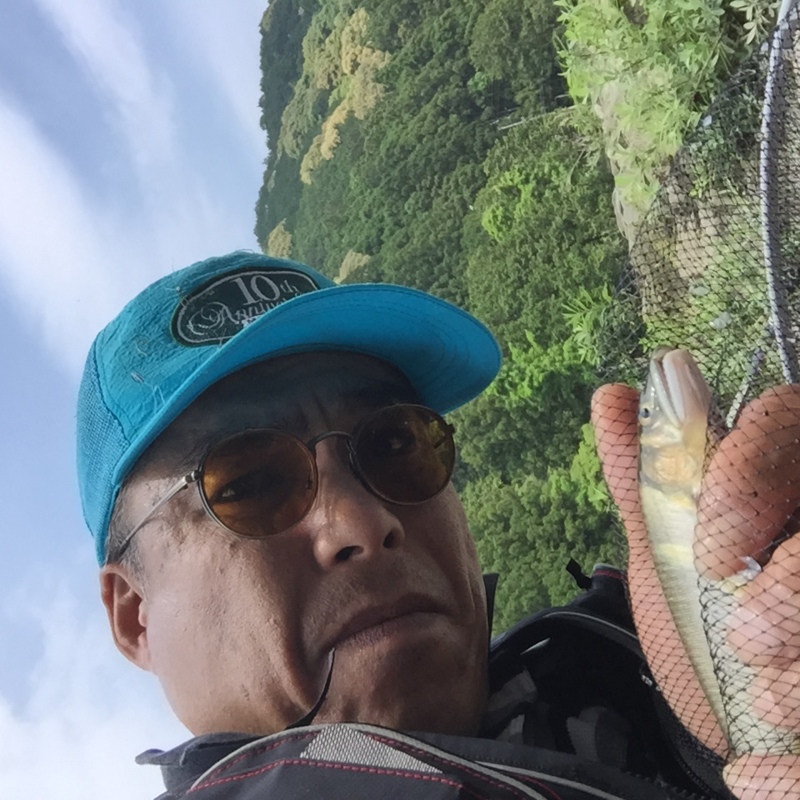 今シーズン初のアユ釣りに三重県大内山川に釣行しました。初めての川なので、オトリ屋さんで状況を聞くと場所によって釣果に差が出る様で、放流量の多い区域が良さそうという事なので漁協の上流の田垣内と呼ばれるポイントに入りました。午前中は、水温も低く色々なポイントにオトリを入れても反応がなく昼前に風が止んで太陽が顔を出したタイミングでいい感じの感触が手に伝わり18cmの黄色いアユが玉網に収まりました。比較的水深の浅い流のスジでもう一匹追加して納竿、深場に群れ鮎も見えるので、水温が上がれば期待できそうでした。