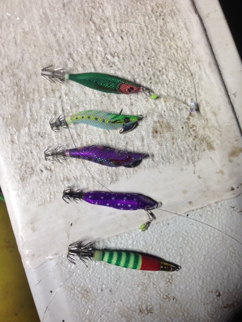 アタリが遠くなってきたら、タナやスッテ・エギのサイズ・カラーを変えて常に新しい疑似餌をイカに見せるように心がけました。