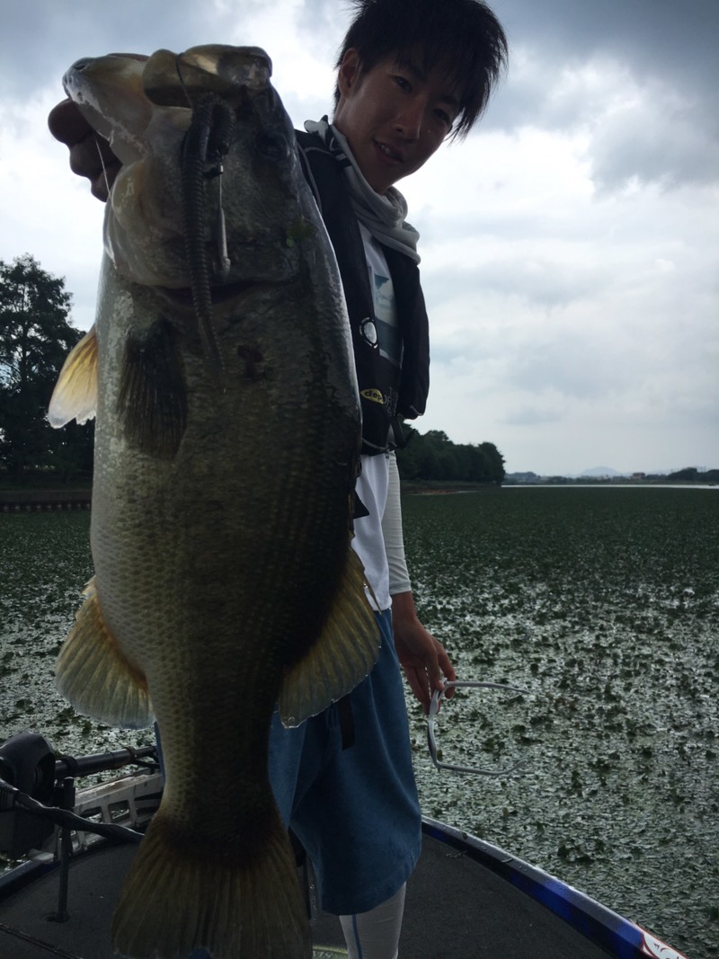 シャローの菱藻エリアでイチバンエイトオリジナルカラーのマグナムシェイキーのパンチショットで54㎝を追加