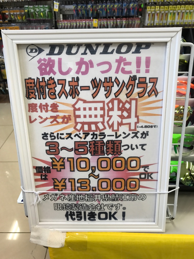 ダンロップ偏光サングラス度付きレンズ展示即売会 | つり具豊富フィッシングイチバン・エイト大阪・京都の大型釣具店