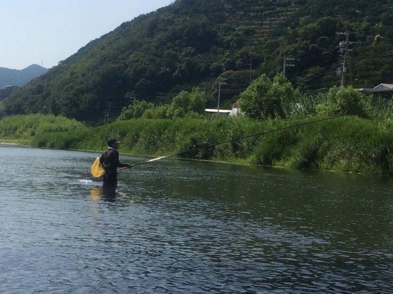 今まで使用する事の無い8m~9m長い竿に戸惑いながら仕掛けを結び恐る恐る鮎を泳がせていました。