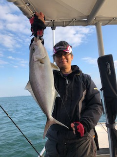 ハマチサイズが多いものの、時折メジロサイズが混じります!同船していた他のお客様は90㎝を超える丸々と太ったブリサイズも釣られていました!