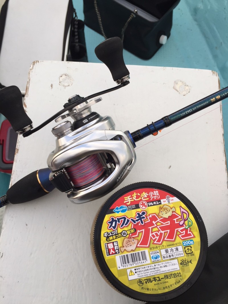 上手く糸をはり、仕掛けを動かしアピールすると待望の肝パンのカワハギをGETできました。