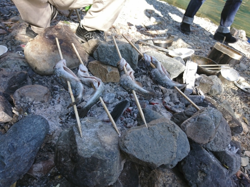 バーベキューと石焼ビビンバと釣りたてのマスの塩焼きを楽しみました。