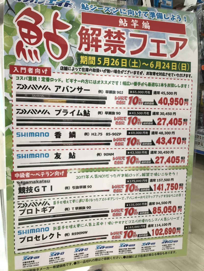 鮎解禁フェア始まりました! | つり具豊富フィッシングイチバン・エイト大阪・京都の大型釣具店