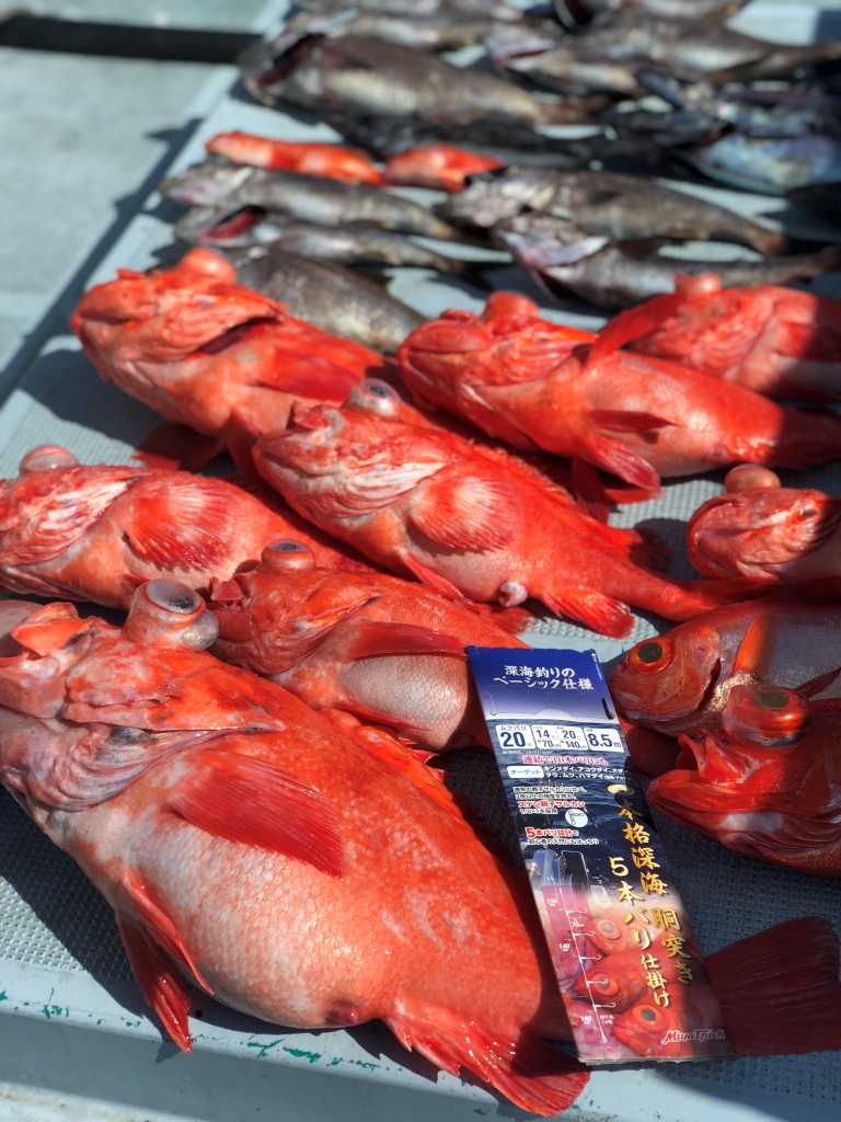 お世話になっためぐみ丸さんは深海釣りの有名船!関西で3本の指に入る操船技術を持つそうでこの日も全員がトラブルなく快適に釣りをさせていただきました。深海釣りはタックルや仕掛の面で敷居が高いように思いますが釣れる魚はどれもおいしい高級魚ばかり!!