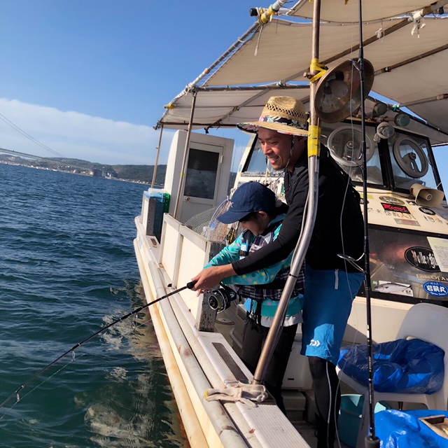 水深も深くないのですが、潮流れが早く底をとるのに苦戦しましたが糸を出して底に着いた時の糸が少し違う動きをします。その時が底に着いた時で、その後竿をじっと止めると竿からゴンゴン底に当たる振動がくるのでこれで底に着いた事がわかりました。