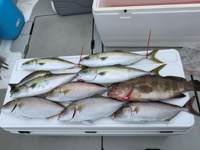 - シオ数枚 ハマチ数枚 オオモンハタ1匹 イサキ1匹