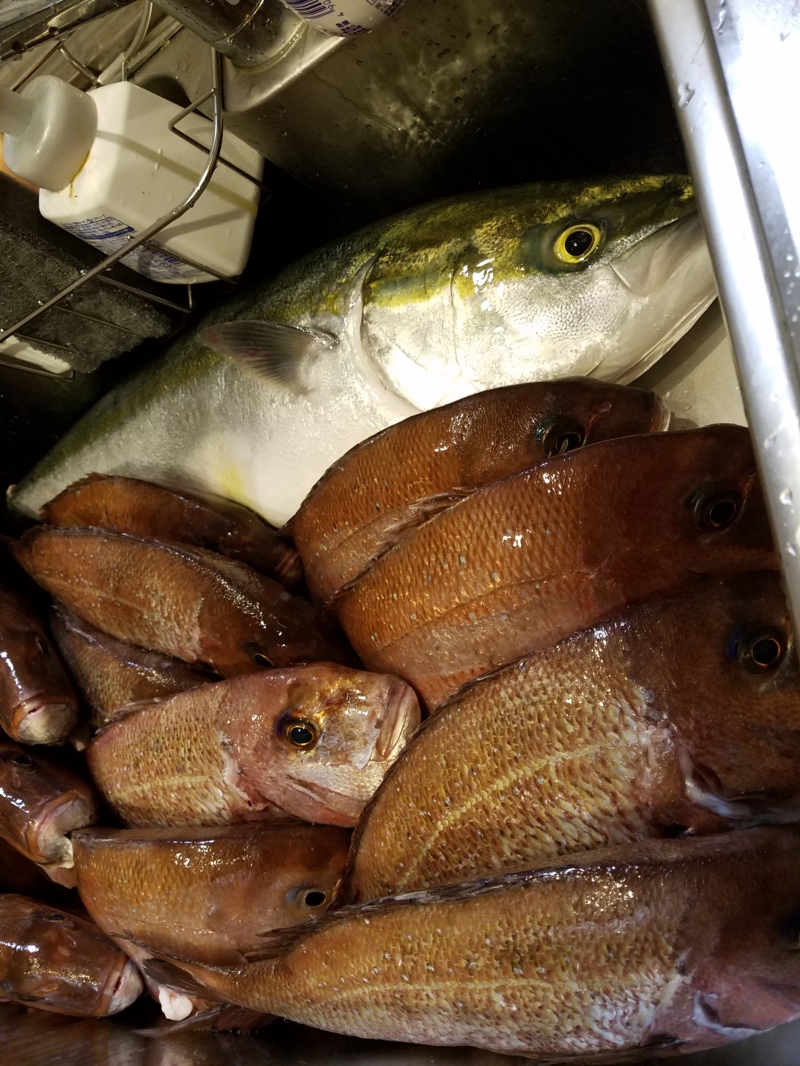 - 青物1匹 マダイ12匹 イサキ2匹 トラフグ1匹