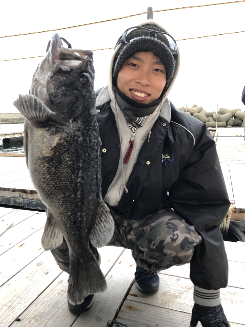 朝一、スタッフ瀧川がクロソイをGET!! ウキ下は2ヒロで、エサは生ミックでした。