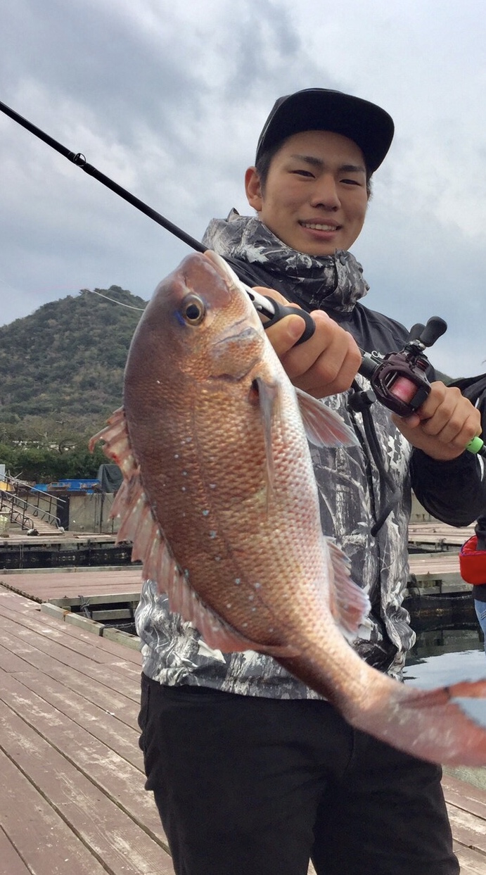 タナは底付近で当たりが多くメインのエサはマダイイエロー、マダイストロング、キビナゴ、オキアミでしたが