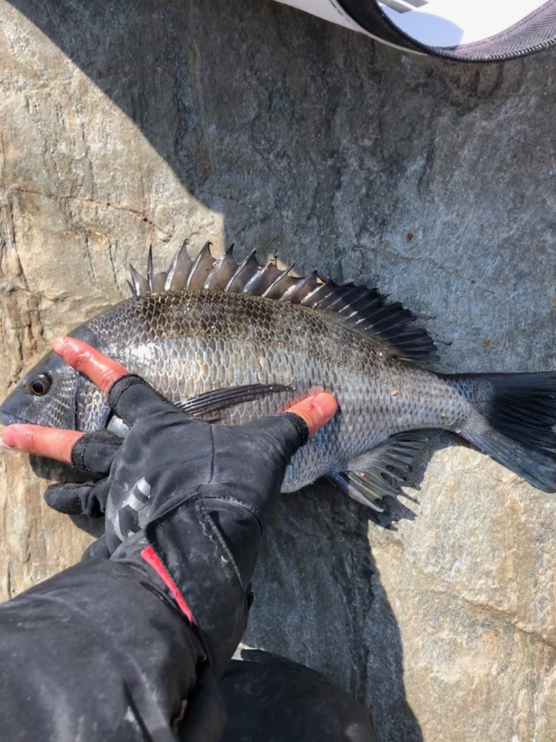 昼になると突風が吹き、釣りがしづらい状況になりましたが、瀬際を攻め続け小さなあたりを捉えることができ、なんとか最後に一枚釣ることができました。