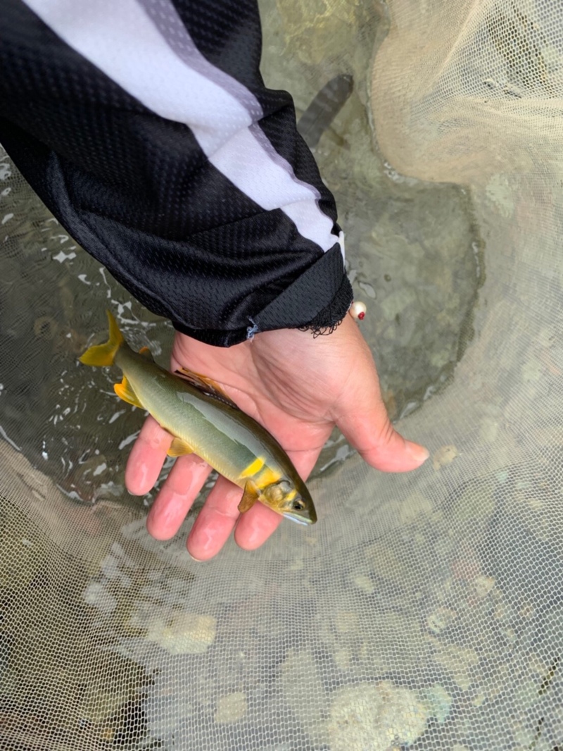 真っ黄色の鮎がしっかり追ってくれました。解禁日の情報ではサイズが小さくてあんまり・・・