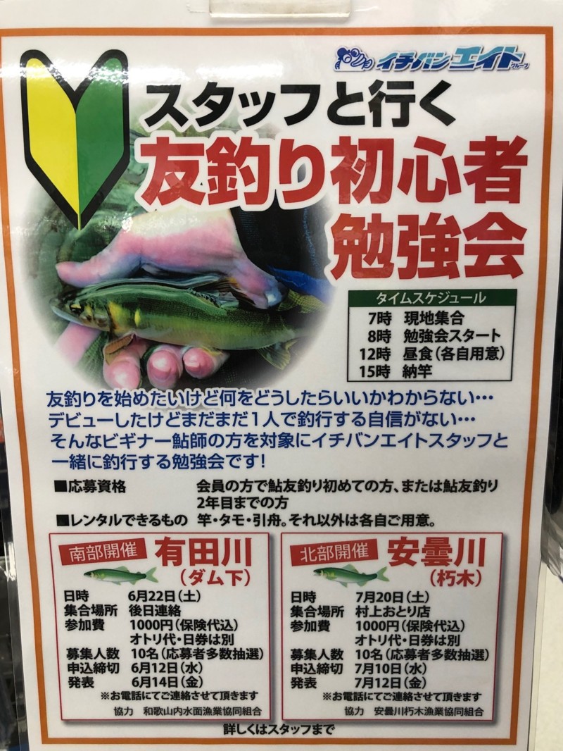 7/20に安曇川朽木で開催の「スタッフと行く友釣り初心者勉強会」はまだ若干名空きがございます!