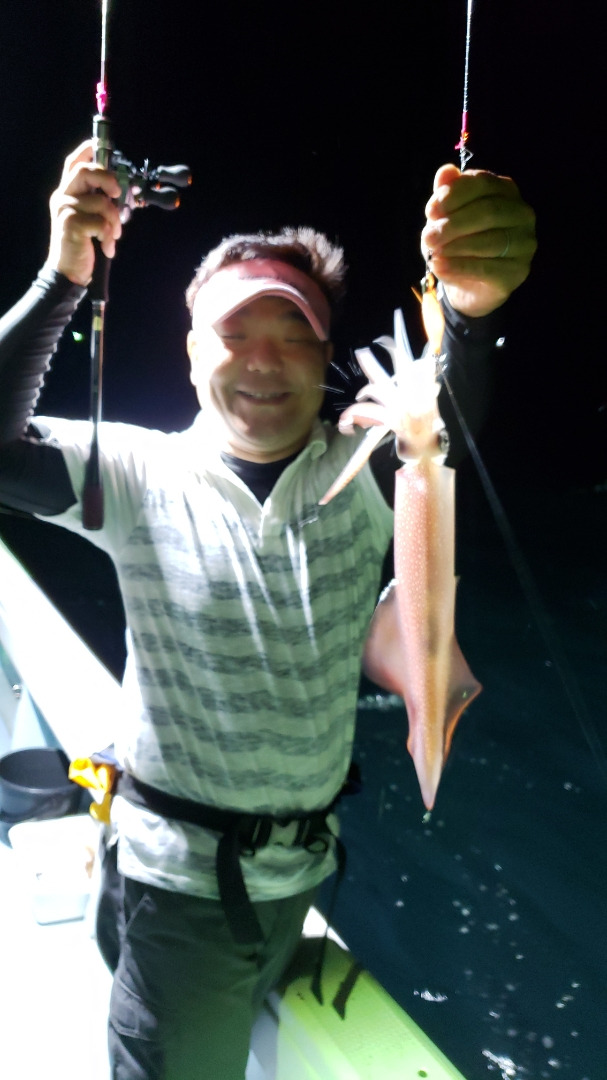 集魚灯を焚いて少しするとポツポツとボトム付近で当たりだしましたが、本調子まではまだまだな感じ。