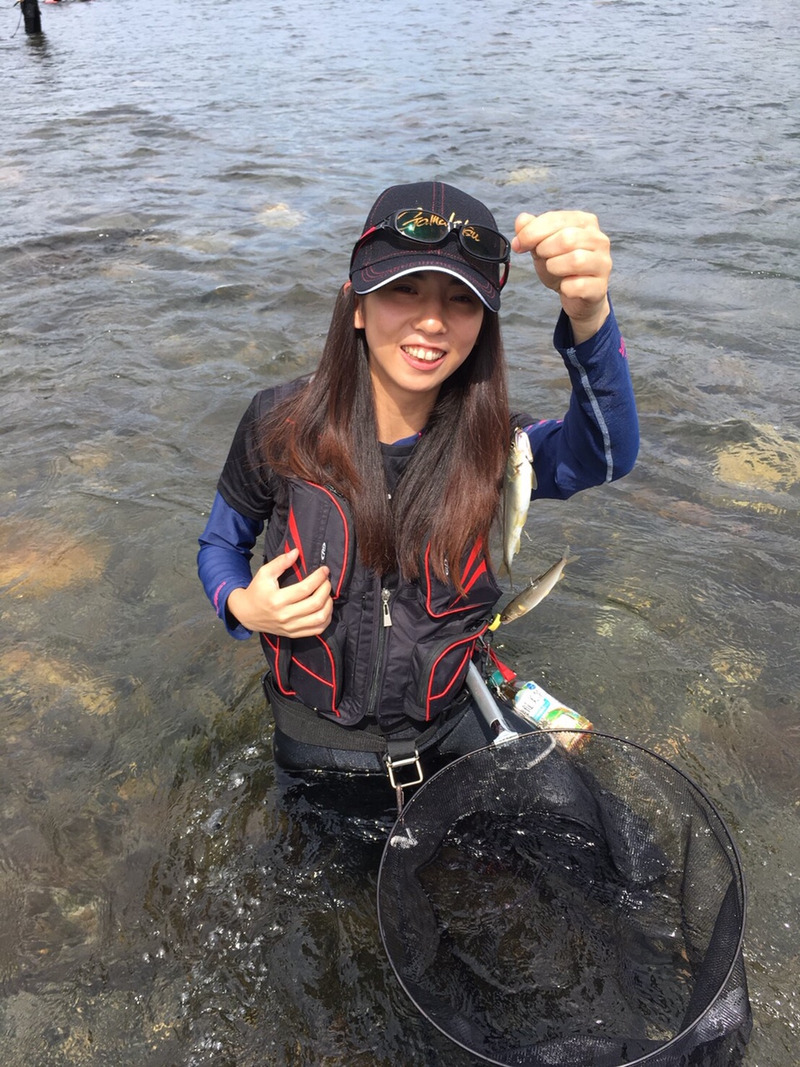 アワアワしながら取り込んだのはかなり小さい小鮎でしたが、人生初の友釣り鮎でニヤニヤしっぱなしでした。