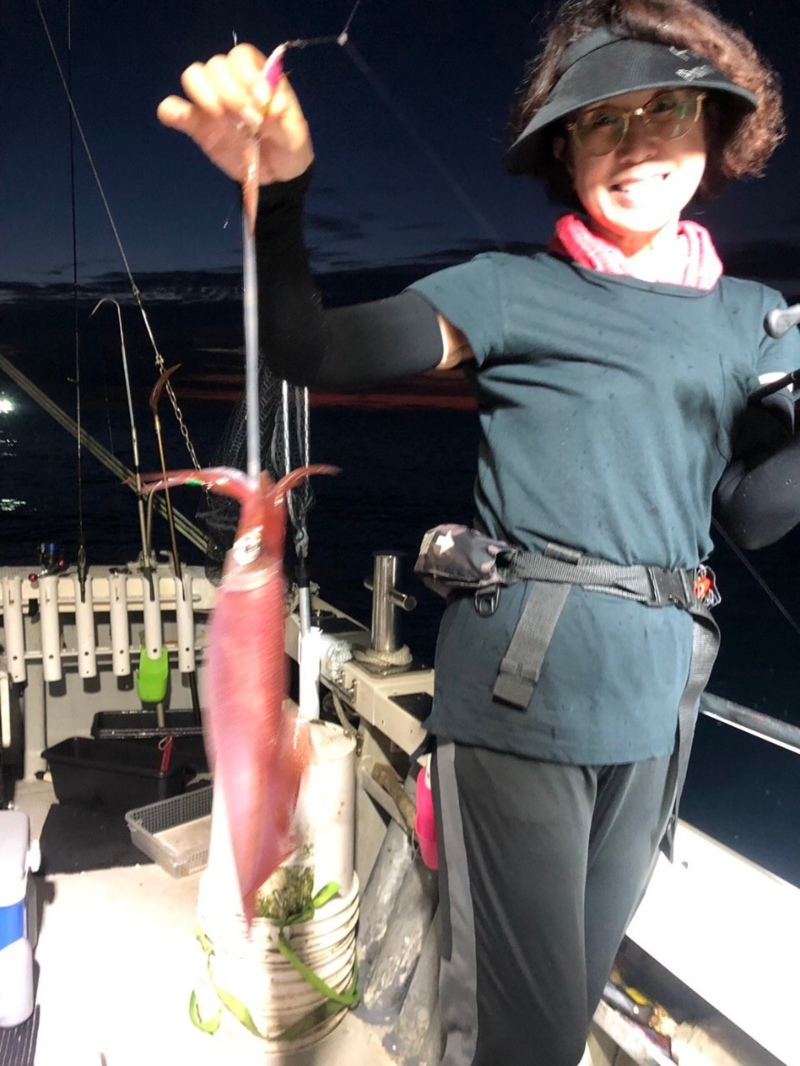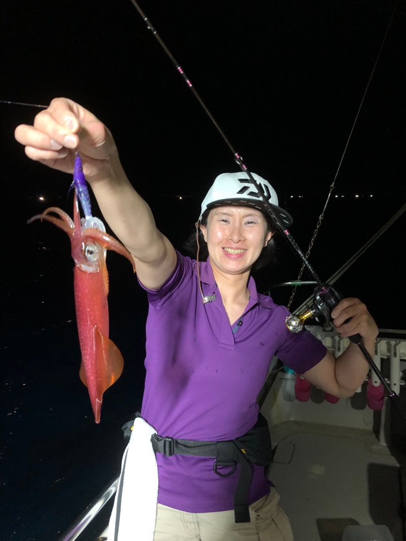 今回はイカメタル初のスタッフも半分居たので、レクチャーをしながら初めて行くと、暗くなると同時にポツリポツリとヒットし気付けば全員安打でサイズもナイスサイズ!