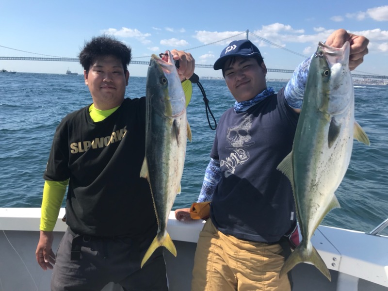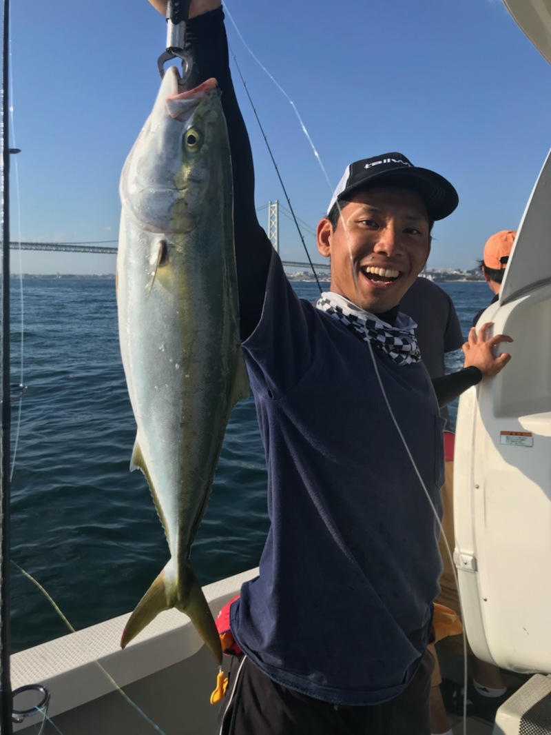 ですが、魚を掛けると周りの船に囲まれ、反応が途絶えます……こまめに移動を続け、飽きない程度に釣れました!途中、メジロが上がったり、アジの飲ませにもチャレンジし、ハマチもキャッチ!