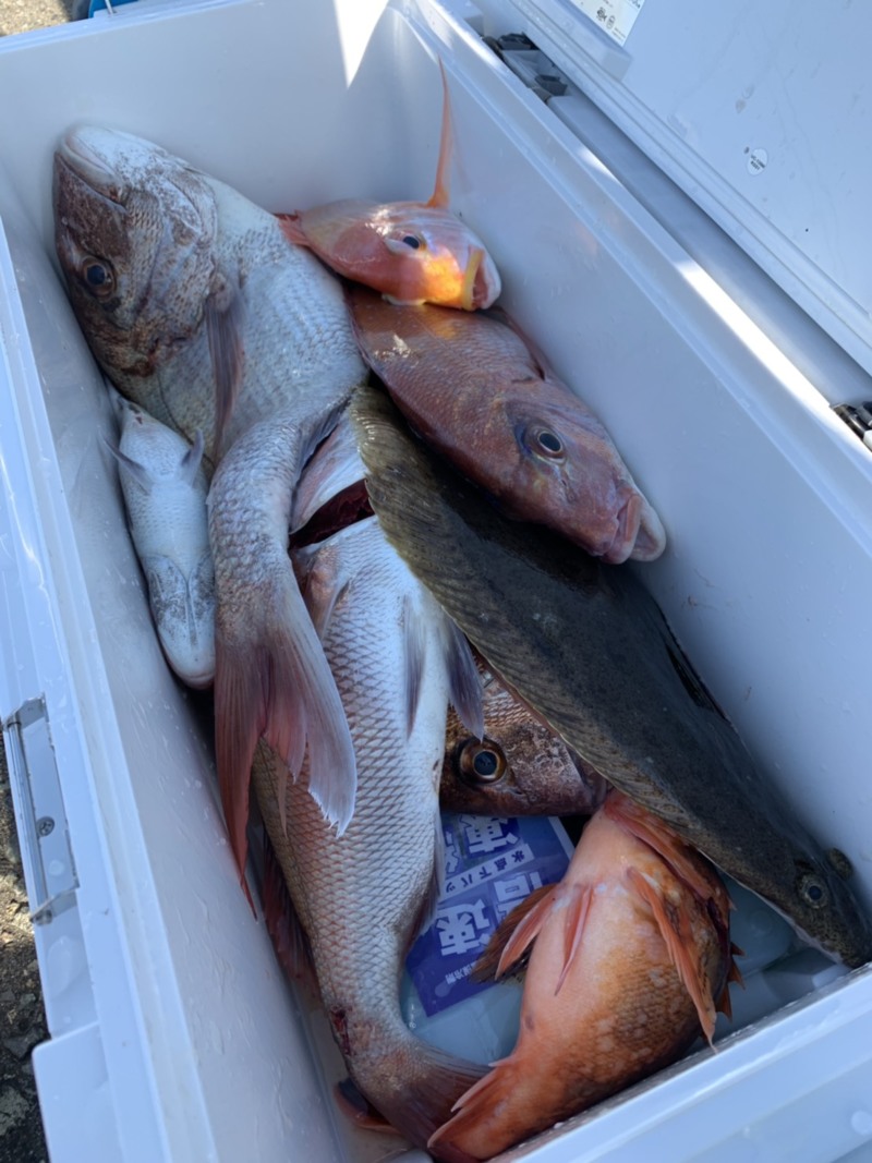 あちこちでマダイのアタリがではじめ、気が付けばクーラーにはマダイ・ヒラメやレンコダイやカサゴ等が!!