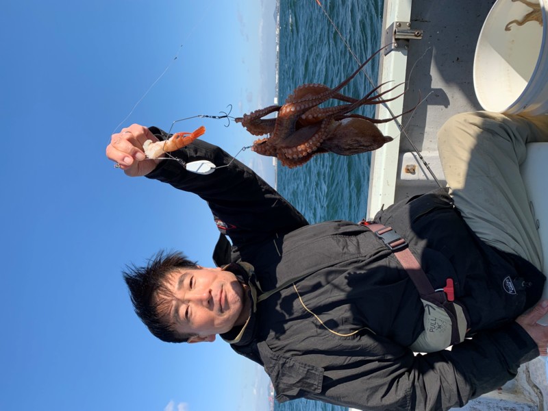 この日は中々フグが掛かってくれませんでしたが、かわりにタコが釣れてくれました!