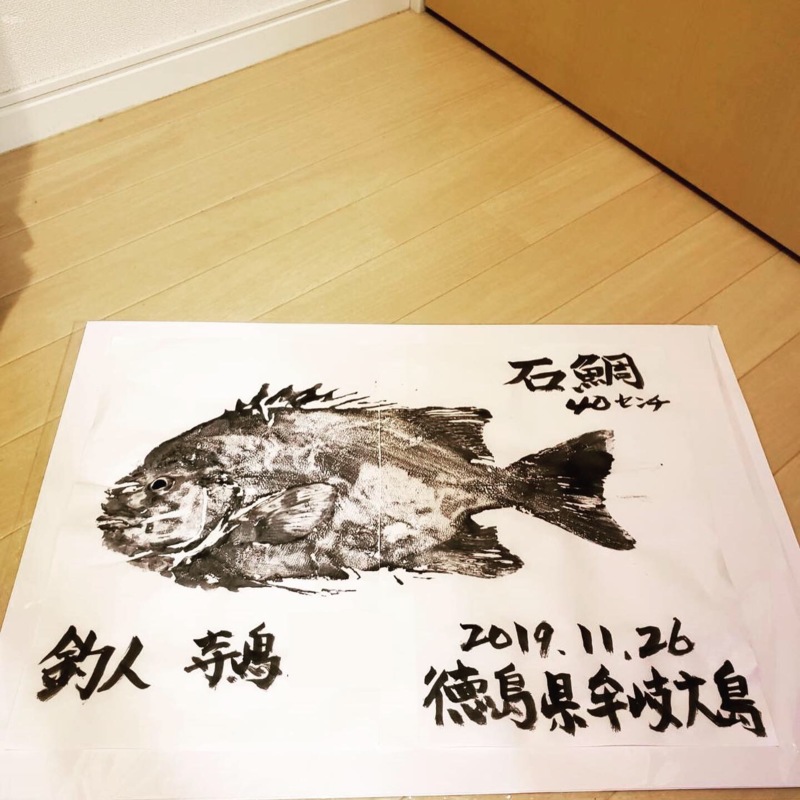 石鯛のいつ食い込むか分からないアタリの連続に、食事をとる事も忘れる程夢中になり、そして釣れた事が嬉しすぎて、見よう見真似で自作の魚拓も作ってしまいました(^O^)笑