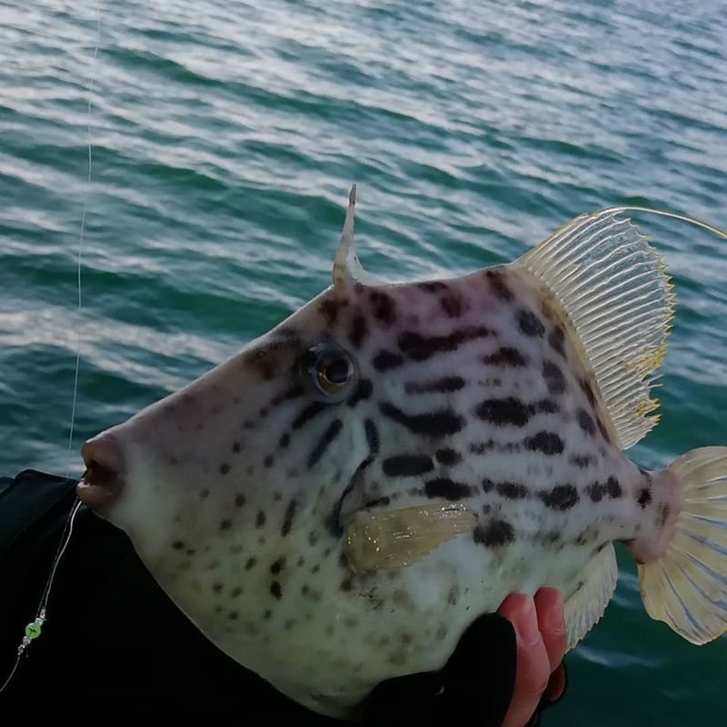 諦めずにいろいろと試していると、待望のアタり!掛けれませんでしたが、このアタりをキッカケに、アタりをアワせるポジションがわかり、待望のカワハギ27cm😊😊😊