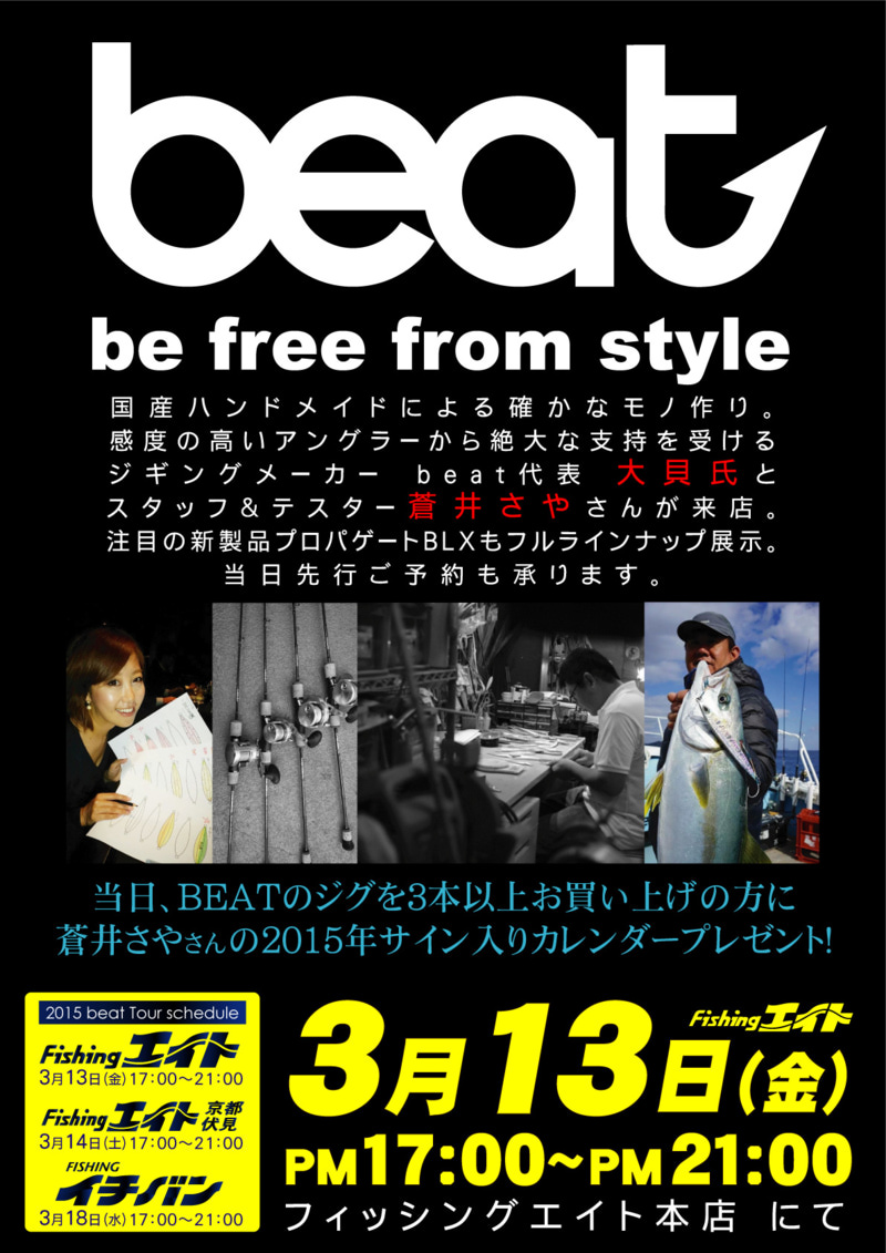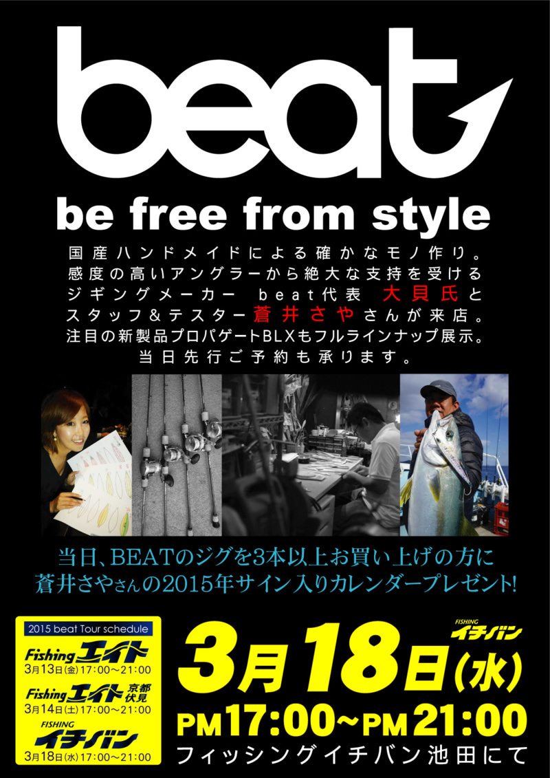 当日は、BEATのジグを3本以上お買い上げの方に