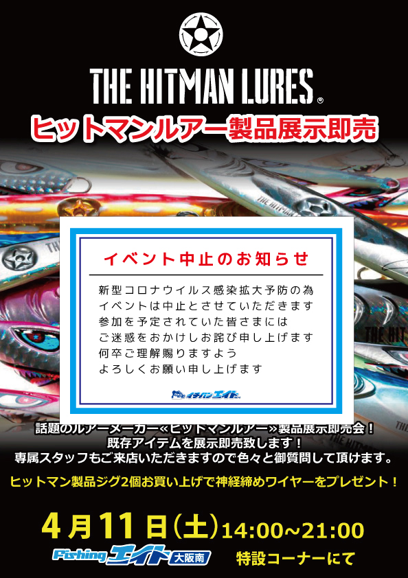 ヒットマンルアー製品展示即売会中止のご案内 | つり具豊富フィッシングイチバン・エイト大阪・京都の大型釣具店