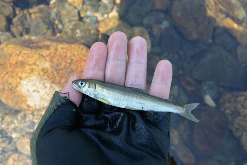 姿を見せてくれたのは本日の目的の小鮎。7cmほどです。やややせている印象を受けました。