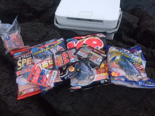 ★尾長グレを狙うにはイワシ粉末の袋餌は必須です!撒き餌のオキアミは潰さないようにしてください。