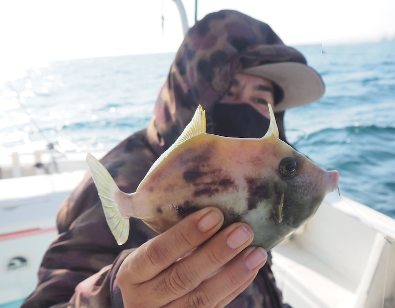 その後待望の本命がヒット!!!叩くようなカワハギらしい気持ちいいアタリでした!